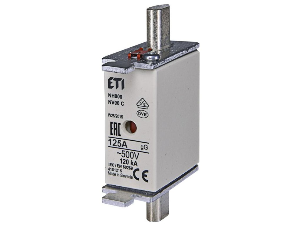 Nožová poistka ETI NH000 125A gG 500V (NV00C) – 120 kA (004181215)