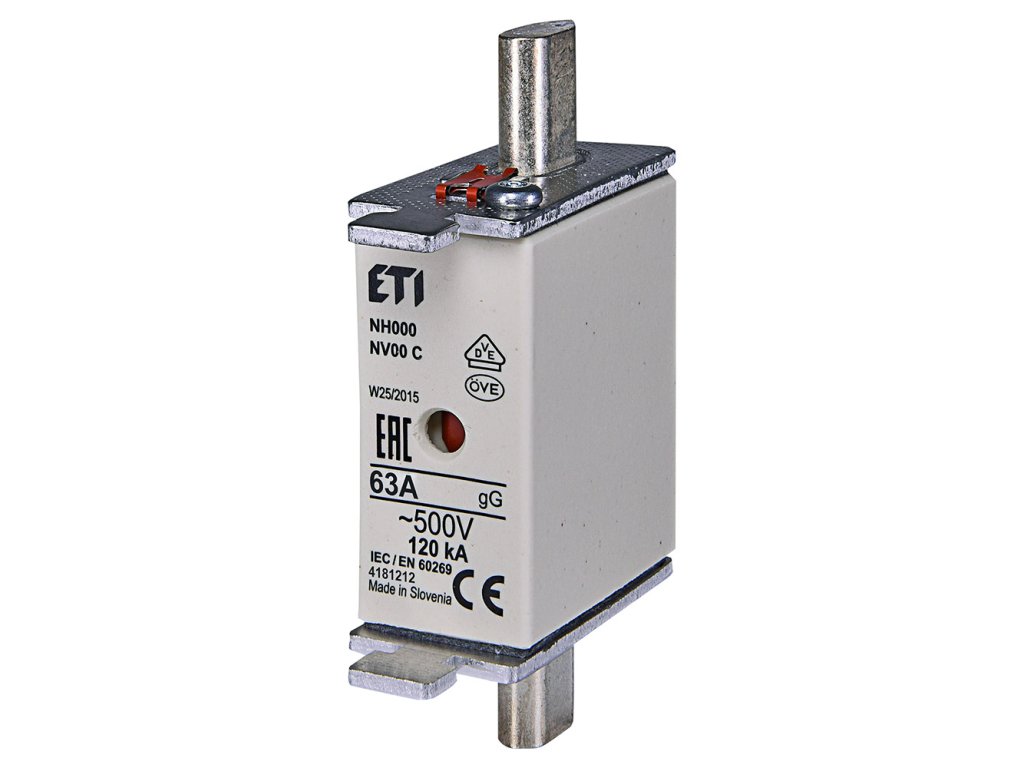 Nožová poistka ETI NH000 63A gG 500V (NV00C) – 120 kA (004181212)