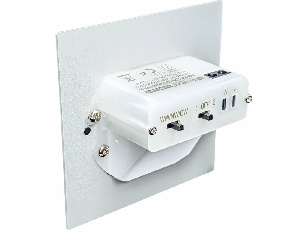 ✓ CCT pred montážou: Teplota bielej farby (3000 K / 4000 K / 6500 K) sa nastavuje manuálne prepínačom ešte pred finálnym osadením do steny.