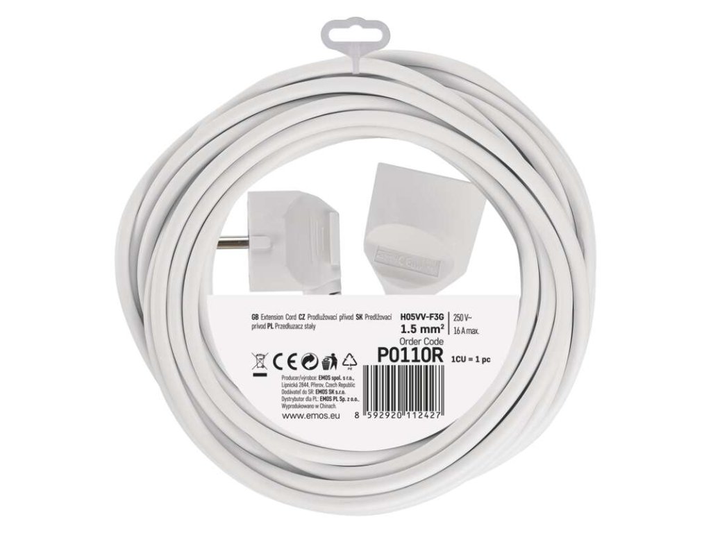 Predlžovací kábel – spojka, 10m, biely - P0110R