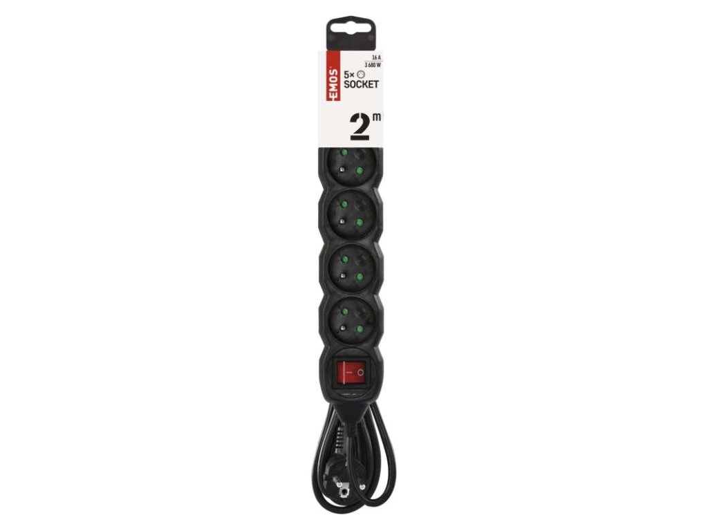 Predlžovací kábel 2 m / 5 zásuviek / s vypínačom / čierny / PVC / 1 mm2 - PC1512
