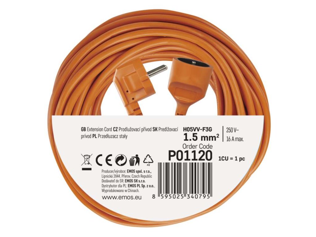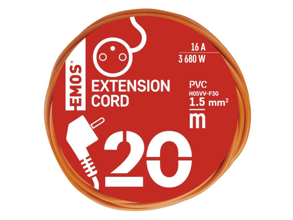 Predlžovací kábel 20 m / 1 zásuvka / oranžový / PVC / 230 V / 1,5 mm2 - P01120