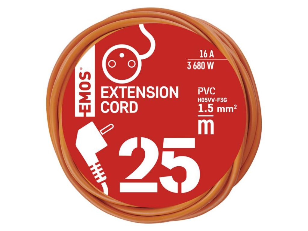 Predlžovací kábel 25 m / 1 zásuvka / oranžový / PVC / 230 V / 1,5 mm2 - P01125