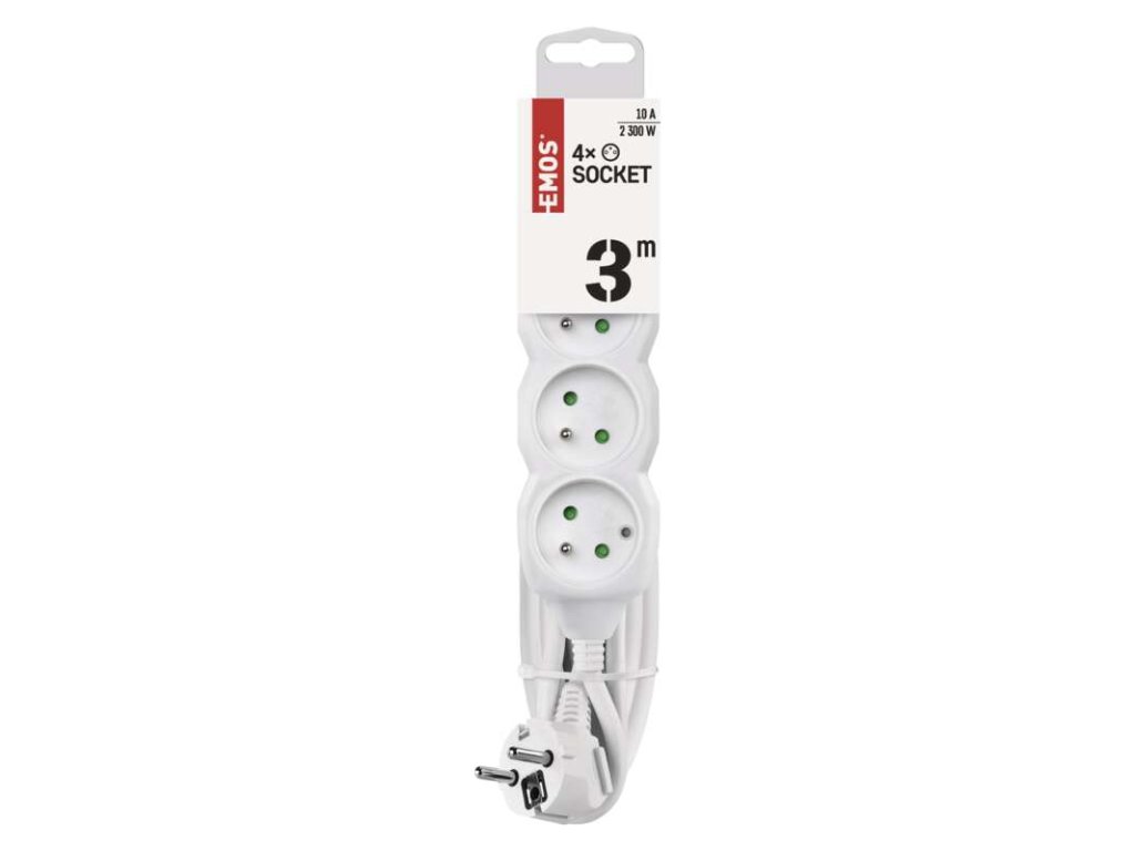 Predlžovací kábel 3 m / 4 zásuvky / biely / PVC / 1 mm2 - P0413