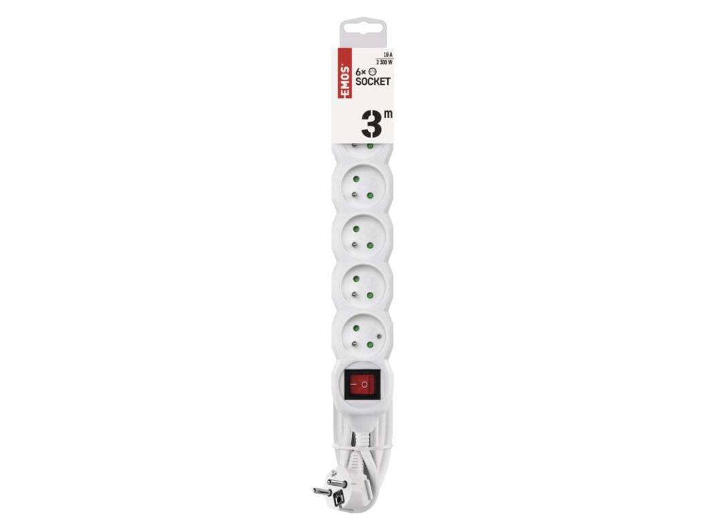 Predlžovací kábel 3 m / 6 zásuviek / s vypínačom / biely / PVC / 1 mm2 - P1613