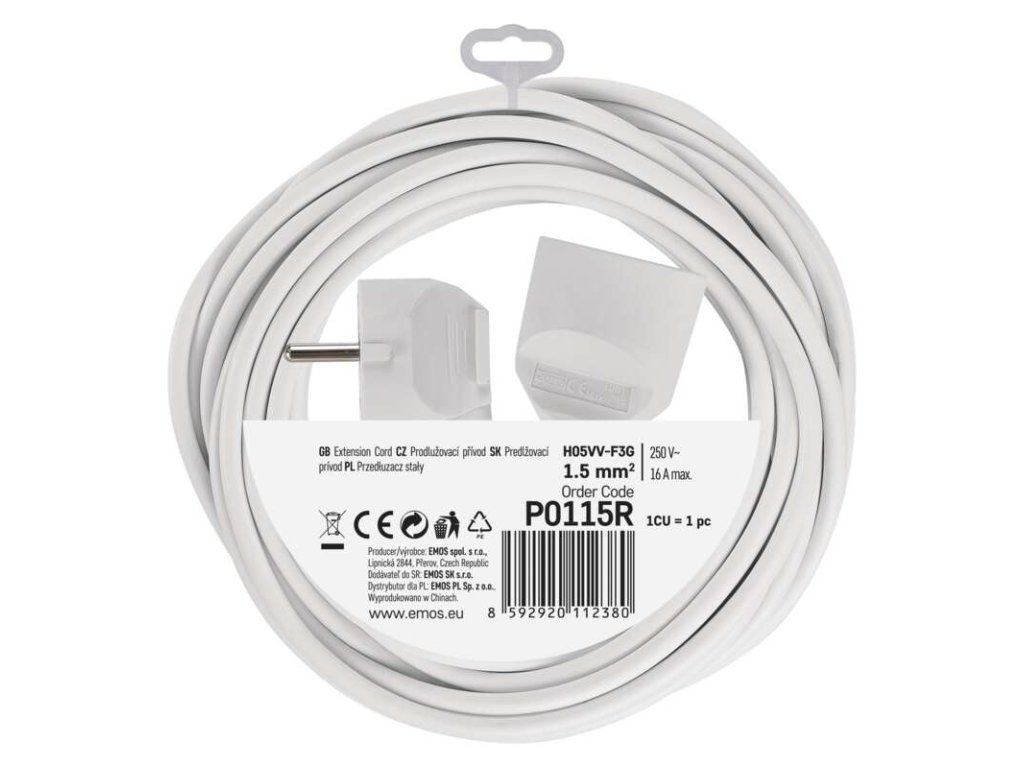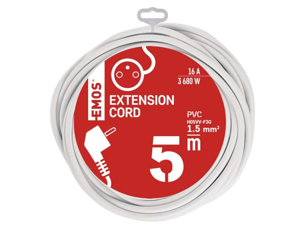 Predlžovací kábel 5 m / 1 zásuvka / biely / PVC / 1,5 mm2 - P0115R