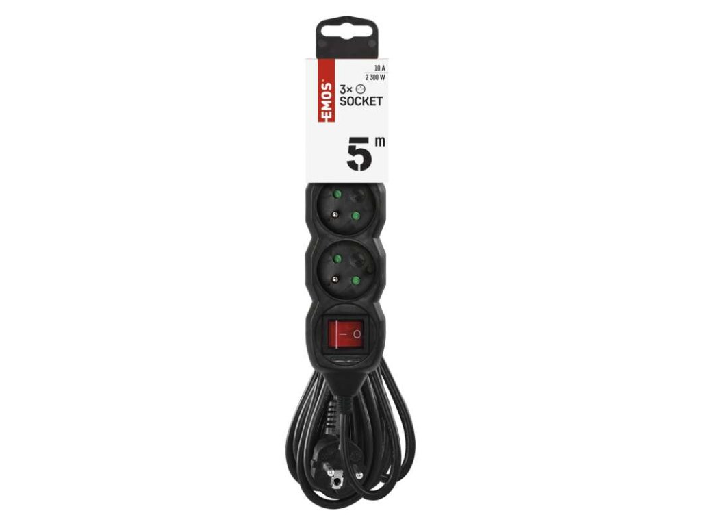 Predlžovací kábel 5 m / 3 zásuvky / s vypínačom / čierny / PVC / 1 mm2 - PC1315