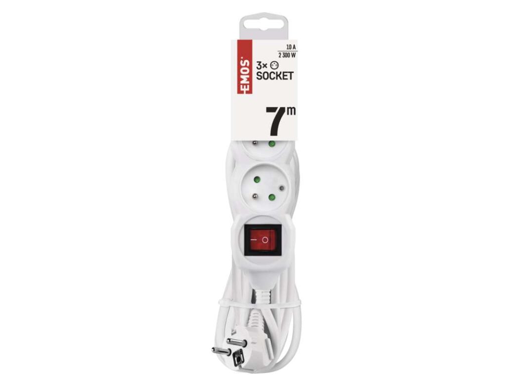 Predlžovací kábel 7 m / 3 zásuvky / s vypínačom / biely / PVC / 1 mm2 - P1317