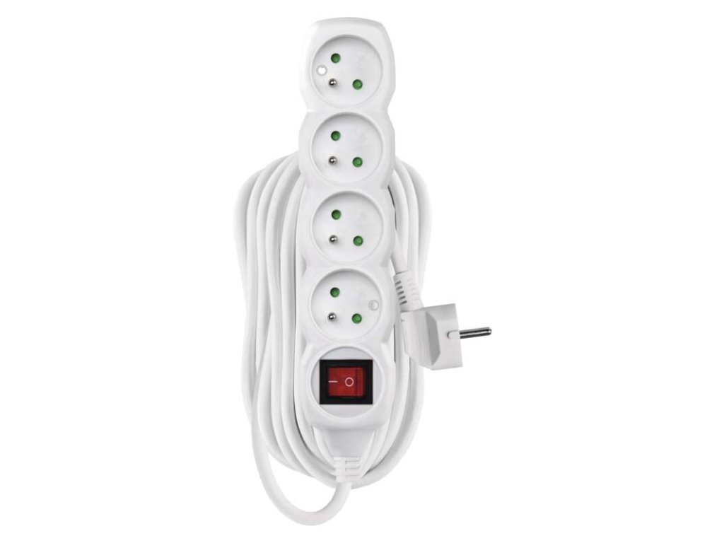 Predlžovací kábel s vypínačom – 4 zásuvky, 10m, biely - P1410R