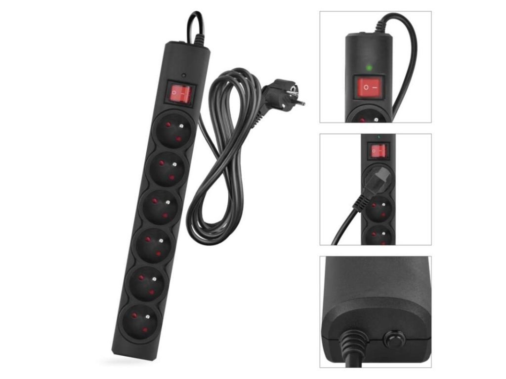 Prepäťová ochrana – 6 zásuviek, 3 m, čierna - P54019
