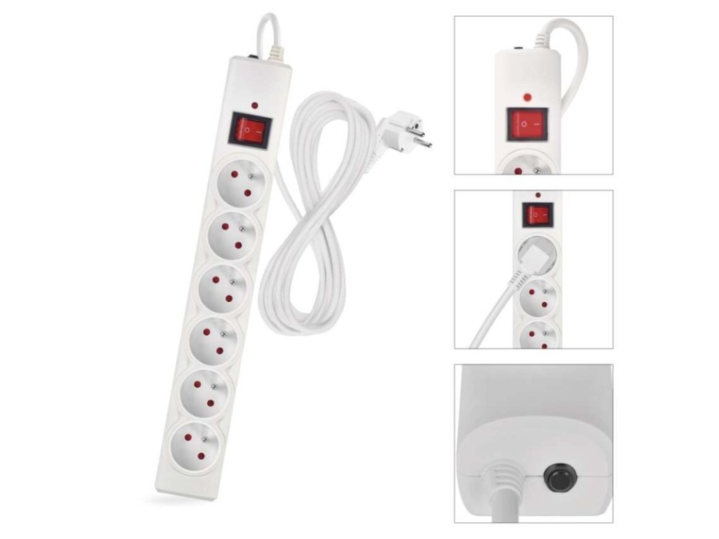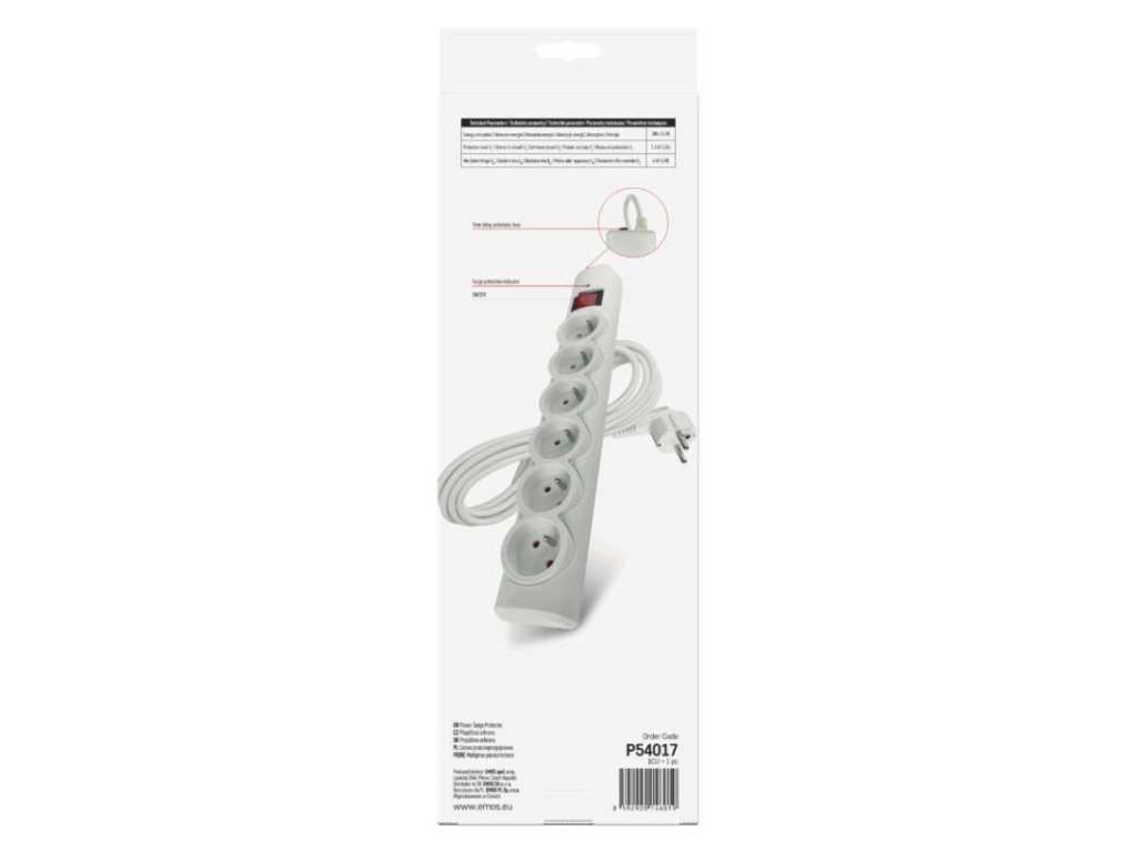 Prepäťová ochrana – 6 zásuviek, 5 m, biela - P54017