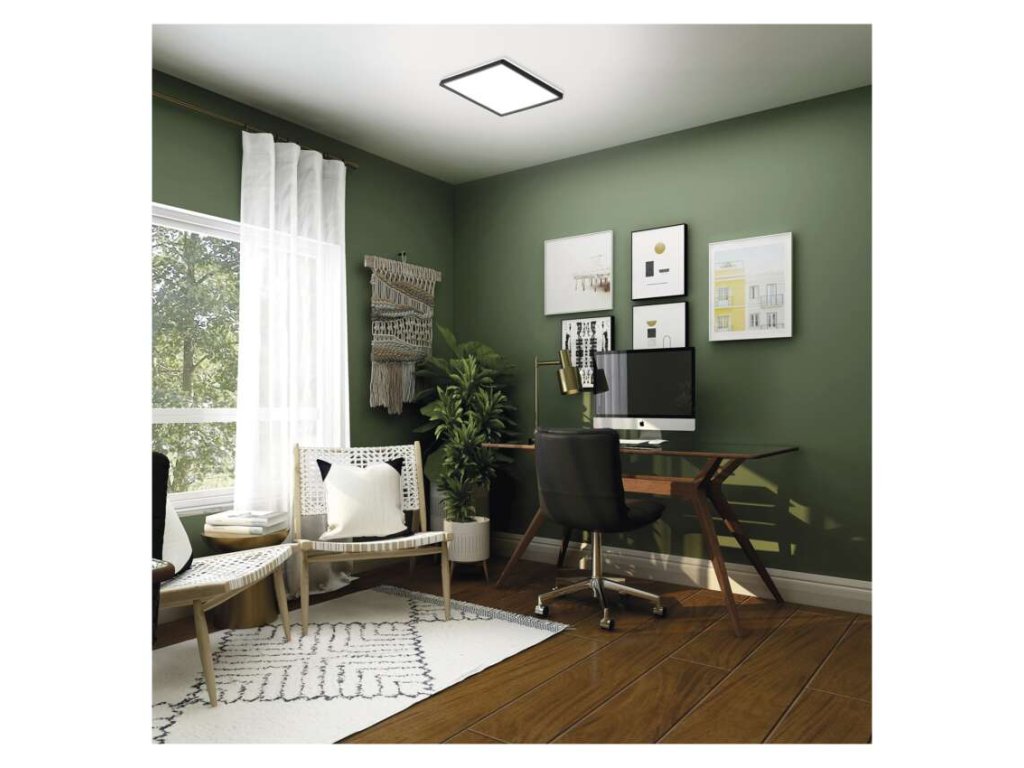 - Premerajte si miesto na strope. Svietidlo má pomerne veľký rozmer 420 × 420 mm. Vyžaduje okolo seba dostatok voľného priestoru, aby sa nestratil okolitý svetelný efekt (halo).