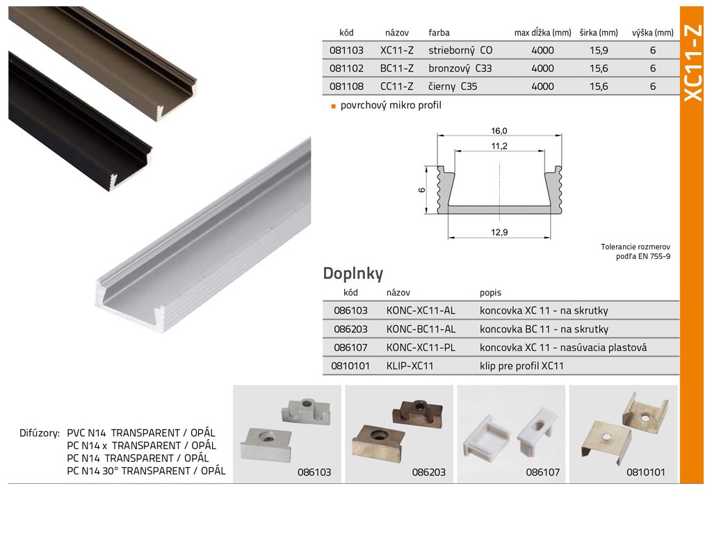 - možnosť použiť narážací mliečny alebo číry kryt PC-N14 alebo PVC-N14