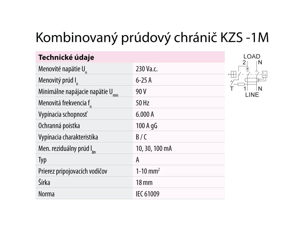 Popis - KZS - 1M je istič zvyškového prúdu so vstavanou nadprúdovou ochranou funkčne závislou na sieťovom napätí.