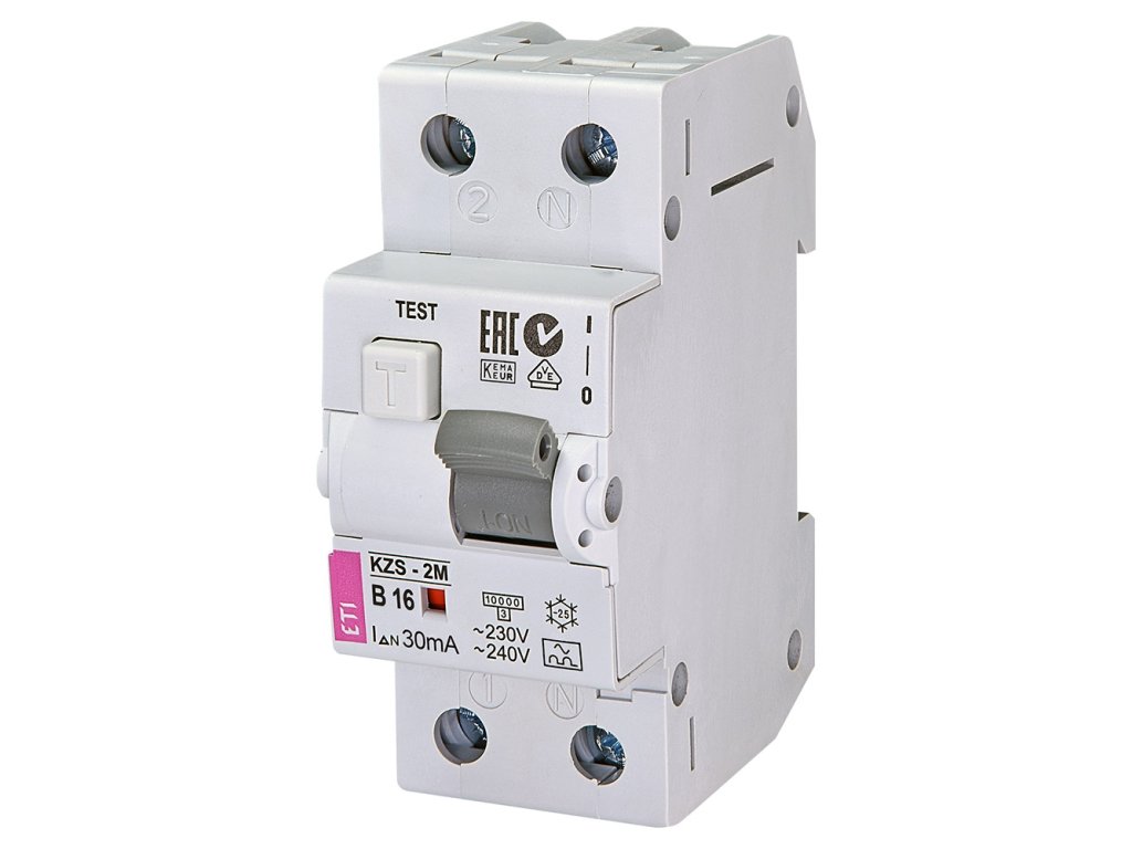 Prúdový chránič s ističom ETI KZS-2M – 1p+N, B16A, 30mA, Typ A, 10kA (002173204)