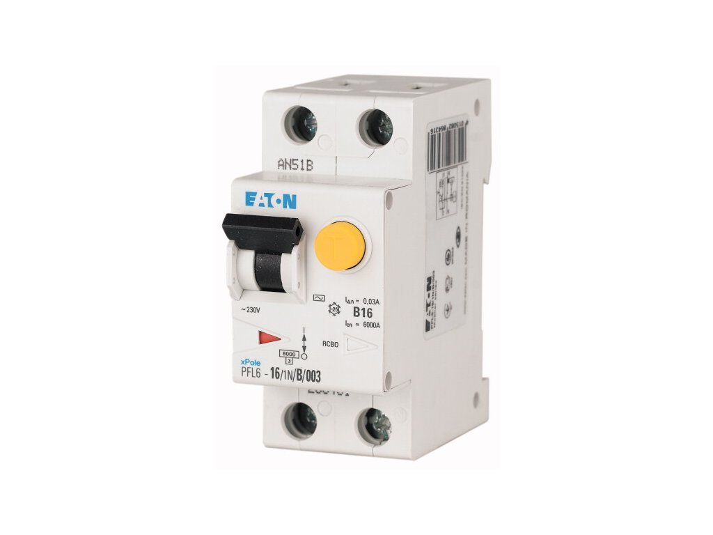 Rýchle zhrnutie: Tento prístroj Eaton PFL6 (tzv. "kombík") spája dve funkcie v jednom tele: 16 A istič (charakteristika B) a prúdový chránič (30 mA). Je určený pre jednofázové obvody (1P+N) a vďaka typu A je vhodný aj pre moderné spotrebiče s elektronikou. Použitím tohto prvku ušetríte miesto v rozvádzači a zvýšite prehľadnosť inštalácie, keďže každá porucha vyradí len konkrétny okruh.
