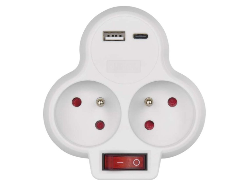 EMOS P0068 je multifunkčný adaptér, ktorý rieši nedostatok zásuviek v modernej domácnosti. Kombinuje dve štandardné zásuvky (French) s výkonným USB nabíjacím modulom (Typ A + C), vďaka čomu môžete súčasne napájať spotrebiče aj nabíjať smartfón bez obsadenia hlavnej zásuvky adaptérom. Integrovaný vypínač umožňuje jedným stlačením vypnúť všetky pripojené zariadenia a šetriť tak energiu.