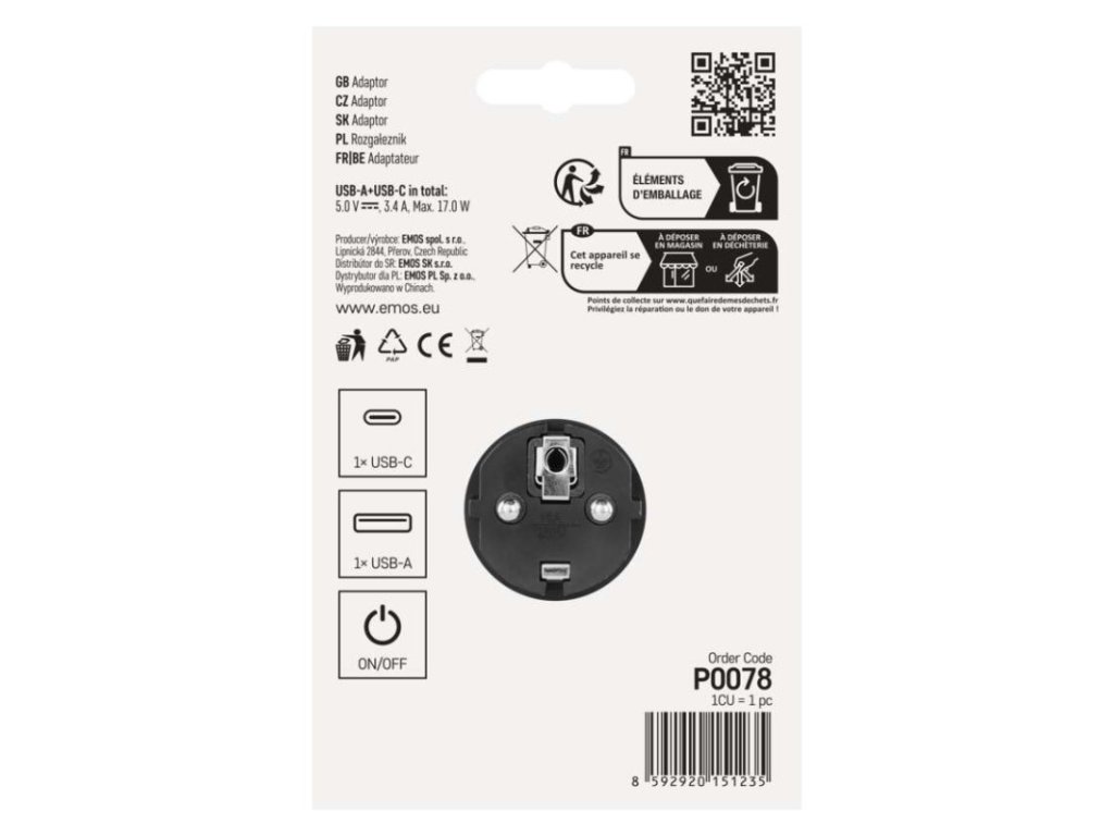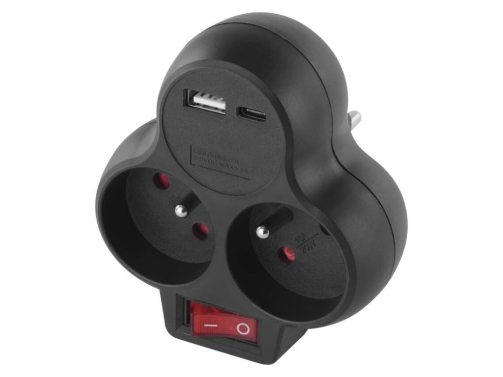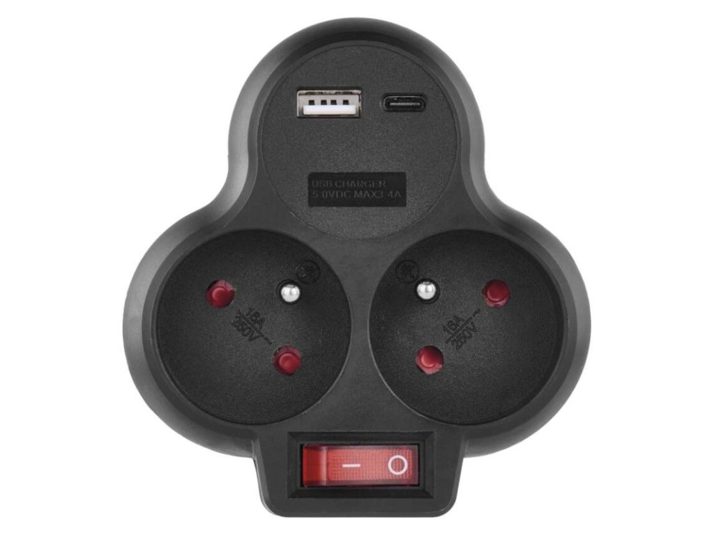 - ✔ Kombinované napájanie: Obsahuje 2× štandardné zásuvky s kolíkom (Typ E) a moderné rozhrania 1× USB-A a 1× USB-C.