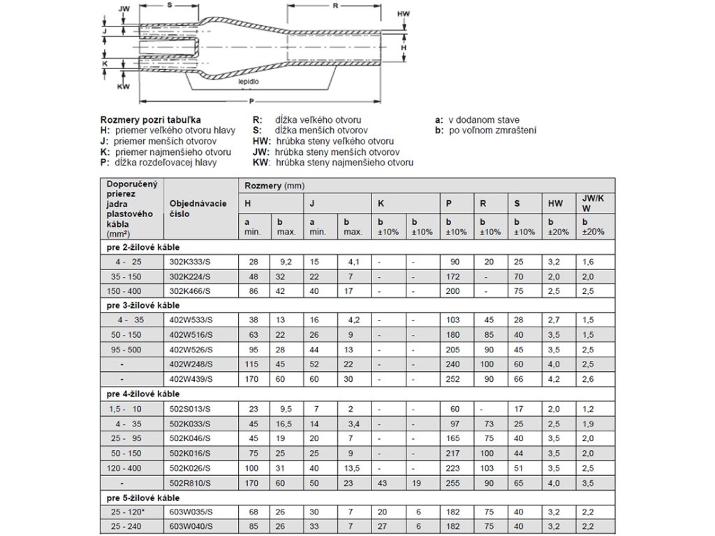 Na utesnenie rozvetvenia žíl, viac žilových káblov a káblových priechodov. Teplom taviteľné lepidlo nanesené vo všetkých otvoroch rozdeľovacej hlavy, tesní na všetky bežne používané plastové a kovové povrchy. Rozdeľovacie hlavy sú odolné proti UV žiareniu a poveternostným vplyvom.