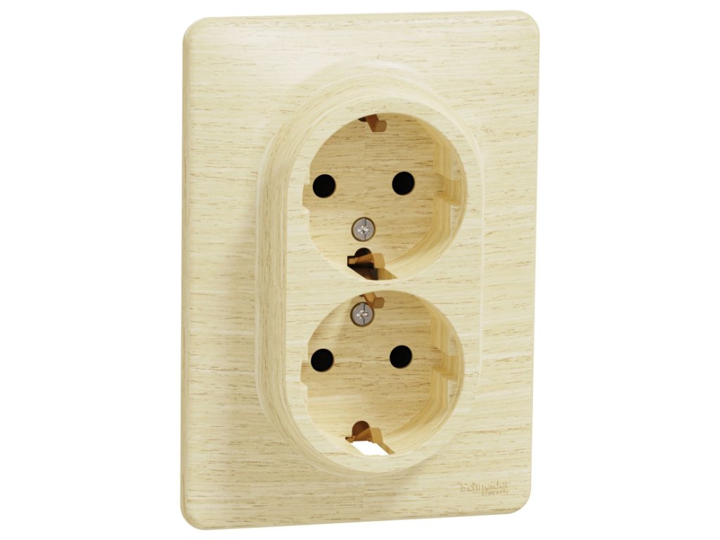 Dvojnásobná zásuvka SCHUKO 230V, 16A s clonkami. ZÁSUVKA SCHUKO (NEMECKÝ ŠTANDARD) SA NA SLOVENSKU BEŽNE NEPOUŽÍVA, JE POUŽÍVANÁ NAPRÍKLAD V RAKÚSKU ALEBO V MAĎARSKU. Prístroj je dodávaný ako celok s krycím rámčekom. Dvojnásobné zásuvky Sedna nie je možné osádzať do jednonásobných ani viacnásobných rámčekov a tiež nie do krabíc na povrchovú montáž.