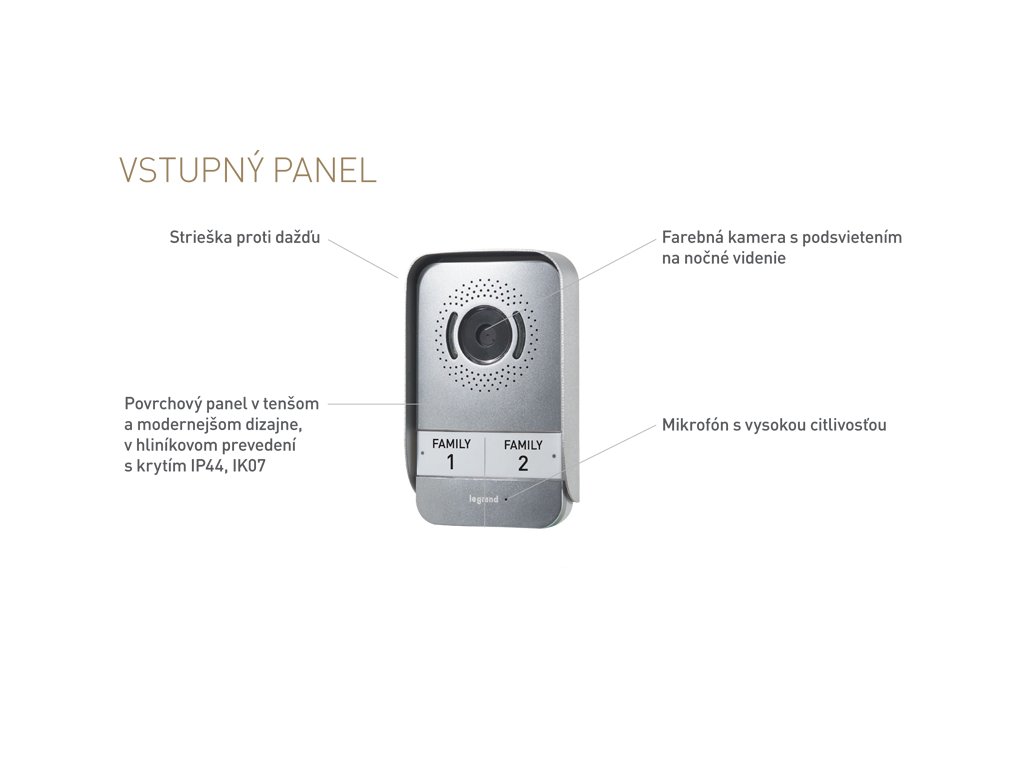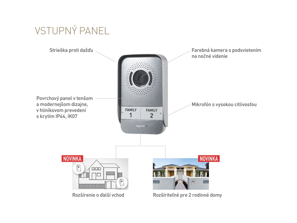 - rozšírenie video sady pre dve domácnosti pridaním vnútornej jednotky s pripojením na Wi-Fi 369425 (biela) alebo 369435 (čierna) alebo klasickej vnútornej jednotky 369235 (biela), 369225 (čierna)