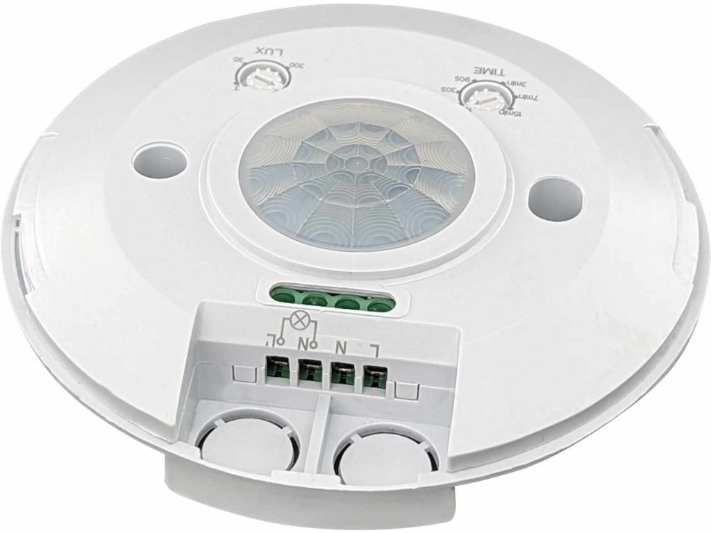 Pohybové čidlo. Pohybové ovládanie svietidiel. Možnosť regulácie: čas, nastavenie (noc / deň)