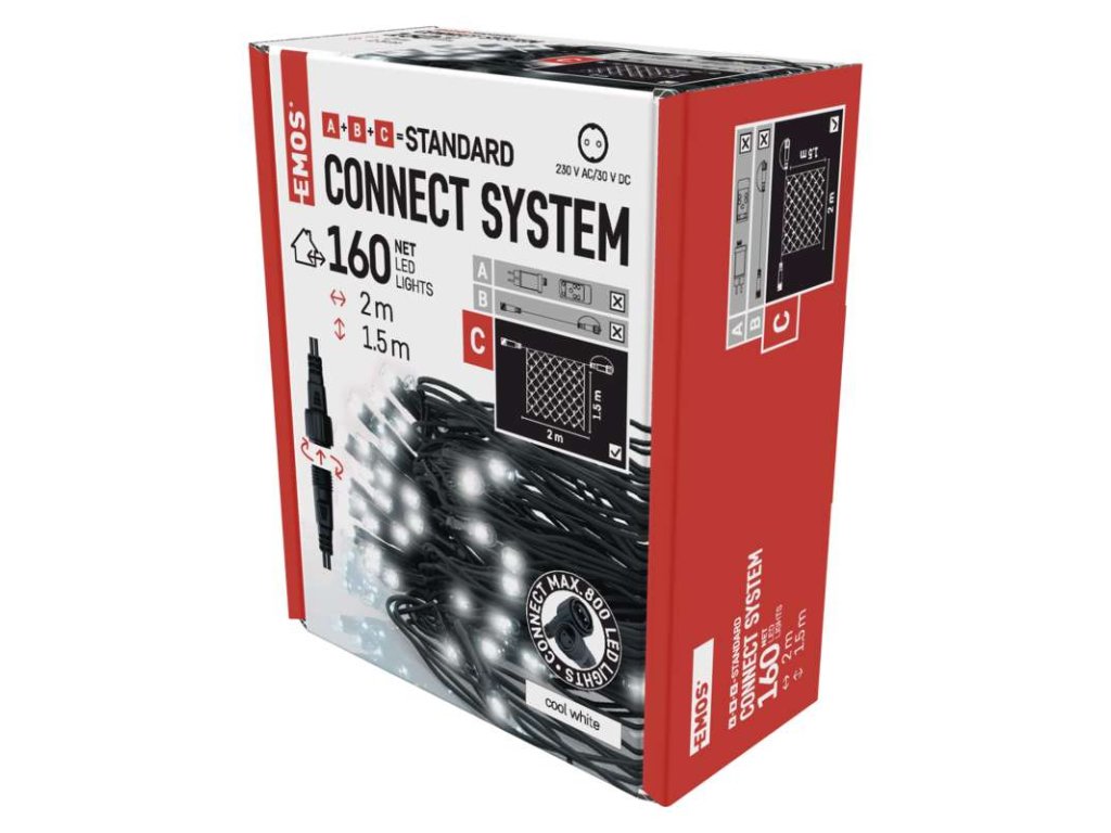 Standard LED spojovacia vianočná reťaz – sieť, 1,5x2 m, vonkajšia, studená biela - D1DC01
