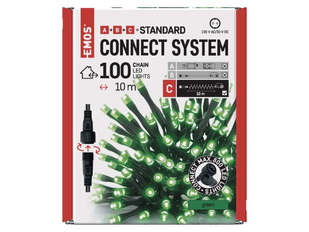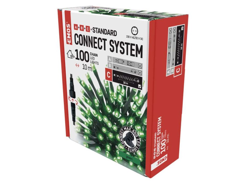 Standard LED spojovacia vianočná reťaz, 10 m, vonkajšia aj vnútorná, zelená - D1AG01