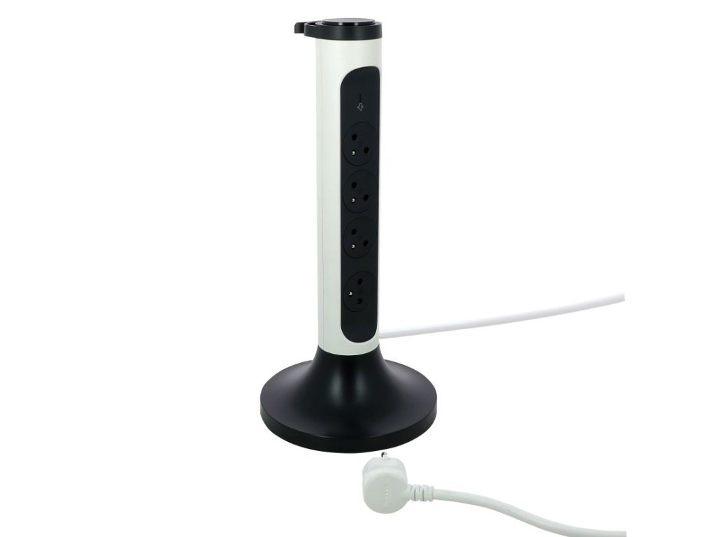 Stĺpik na zem 4x2P+T prepäťová ochrana 2m kábel biela/tmavosivá - 049410