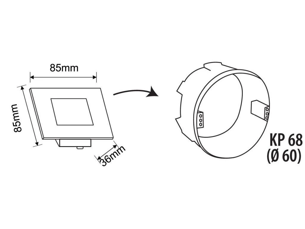 ☛ Inštalačná hĺbka: Celková hrúbka svietidla je 36 mm. Uistite sa, že v krabici KP 68 máte dostatok miesta aj na prívodnú kabeláž. Pri plánovaní elektroinštalácie v novostavbe si prečítajte náš odborný článok o kompletnej elektroinštalácii (v novom okne).