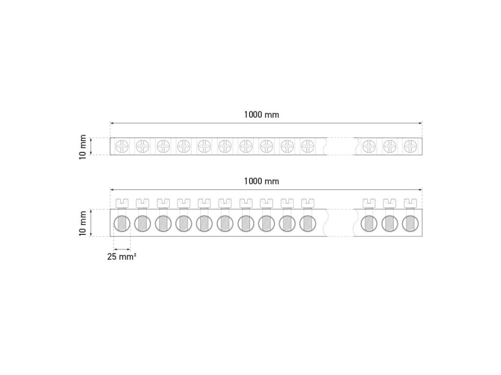 mosadzná, rozmer: 10x10x1000, 116x25mm2 svoriek, 1x skrutka