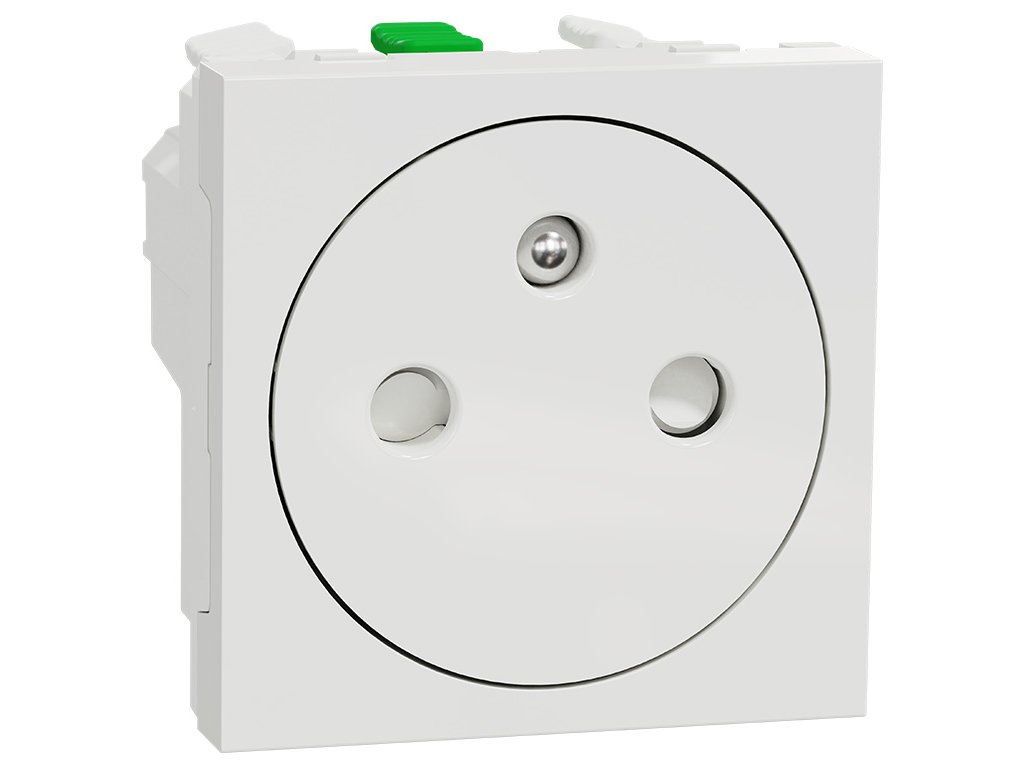 Unica - NU305218E - Zásuvka skrytá 250V/16A 2P+E, clonky, bezskrútková, Biela