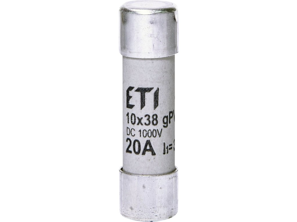 ETI CH10x38 gPV 16A je špeciálna valcová poistka vyvinutá pre ochranu fotovoltických stringov. S menovitým napätím 1000 V DC a schopnosťou prerušiť skratový prúd až 30 kA je kľúčovým prvkom požiarnej ochrany solárnych elektrární. (Kód: 002625081).
