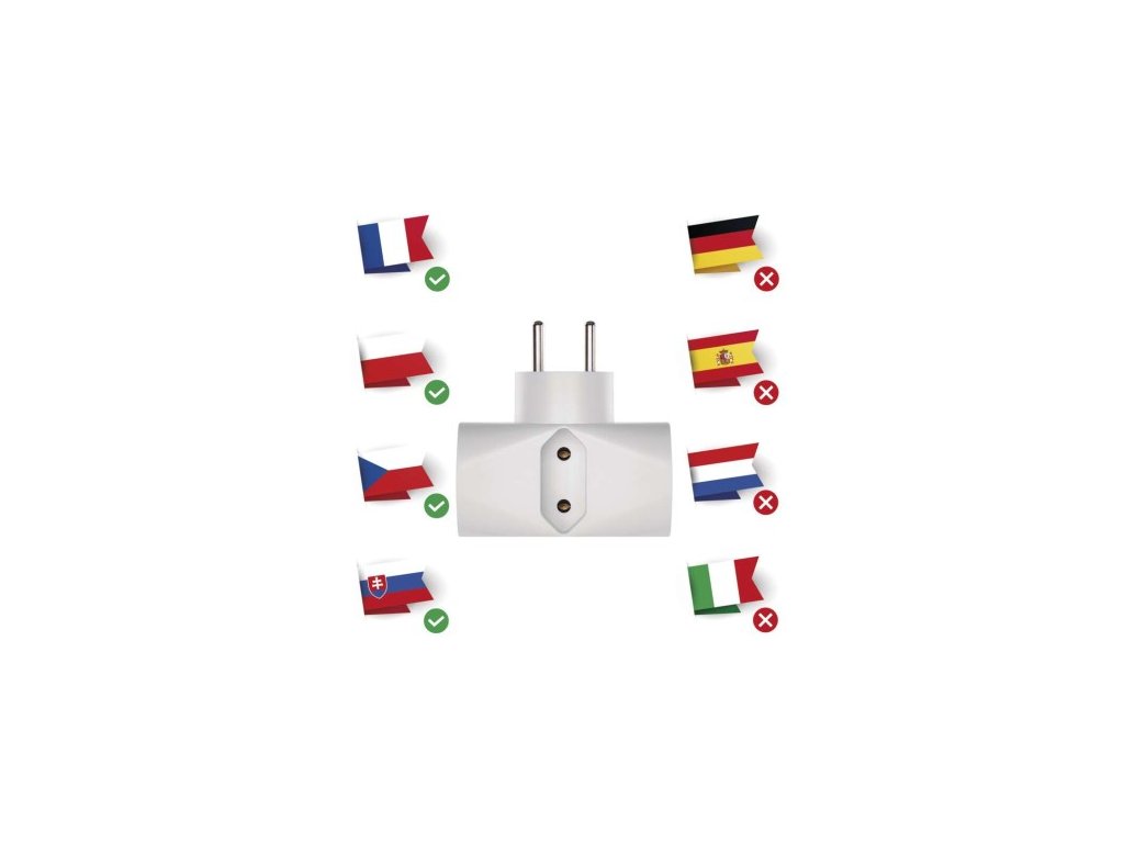 Viacnásobná zásuvka 2× okrúhla + 1× obdĺžniková, biela - P0023N