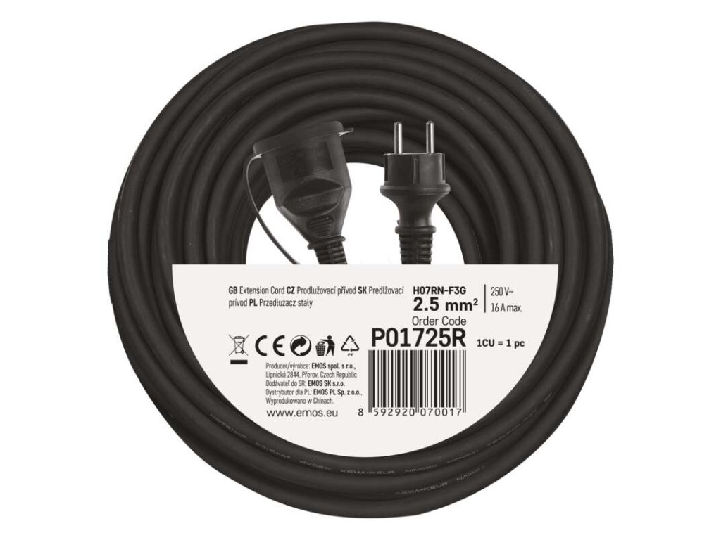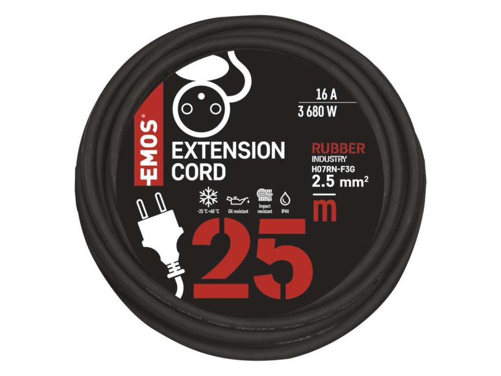 Vonkajší predlžovací kábel 25 m / 1 zásuvka / čierny / guma-neoprén / 230 V / 2,5 mm2