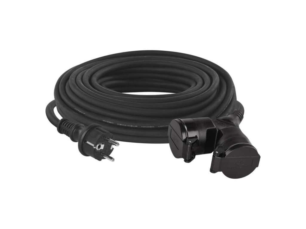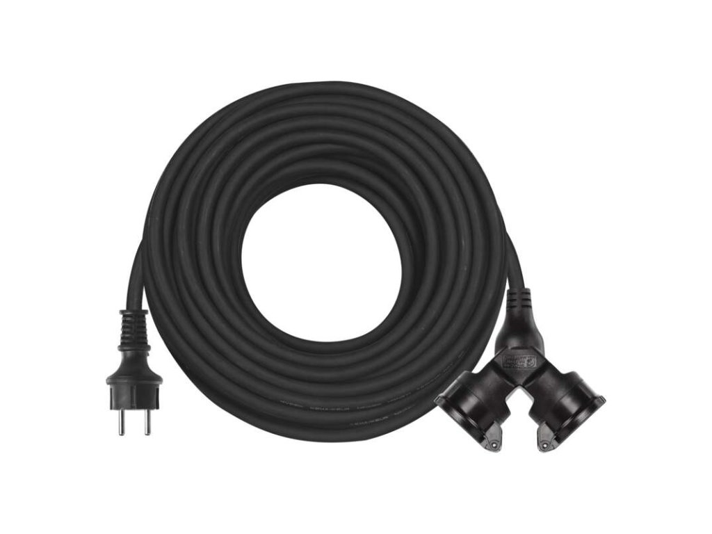 Vonkajší predlžovací kábel 25 m / 2 zásuvky / čierny / guma / 230 V / 1,5 mm2 - P0604