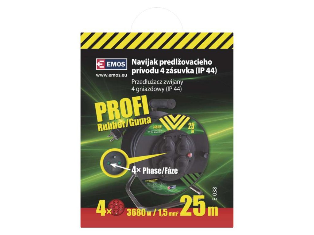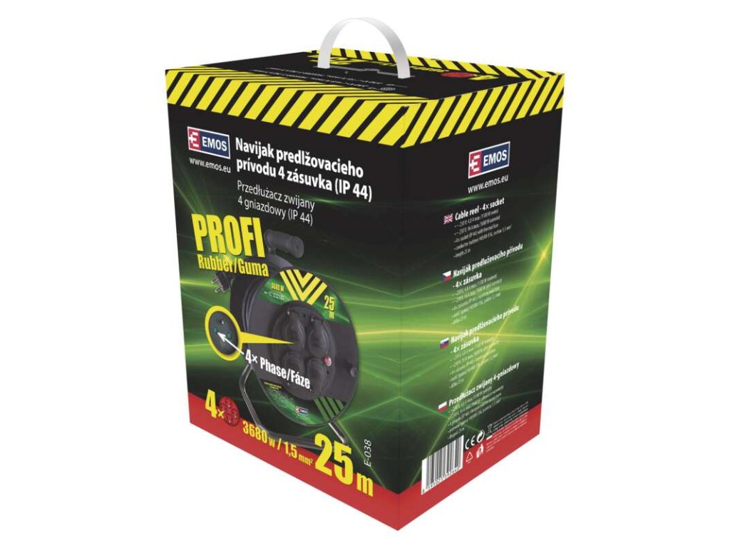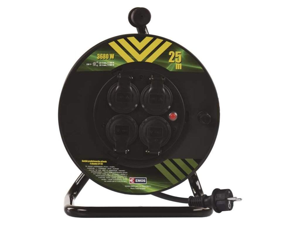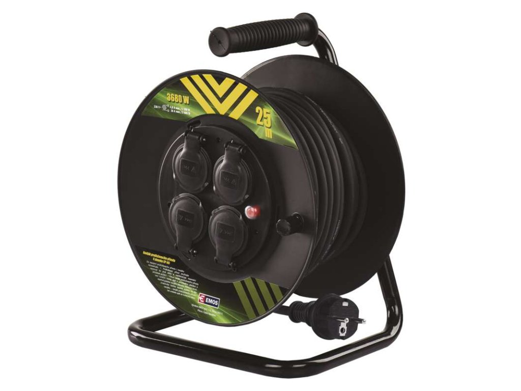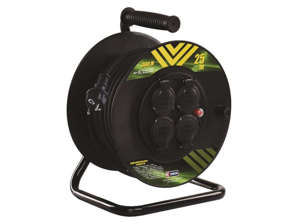 Vonkajší predlžovací kábel na bubne 25 m / 4 zásuvky / čierny / guma / 230 V / 1,5 mm2