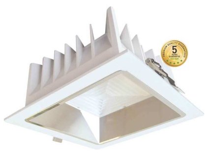 Teleso svietidla: biely lakovaný hliník, difuzor: polykarbonát (PC), atraktivní design, vysoká svetelná účinnosť, index podania farieb RA >90, nízká spotreba elektrickej energie, účiník Pf >0,9, omedzenie oslnenia, flicker-free driver, päťročná záruka