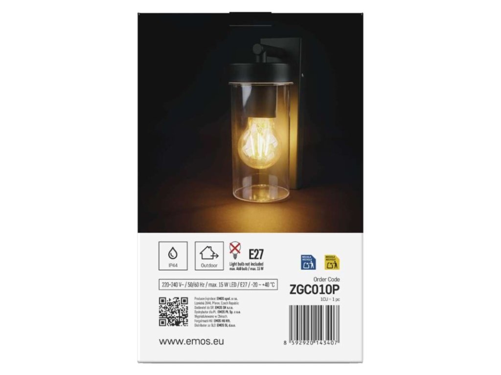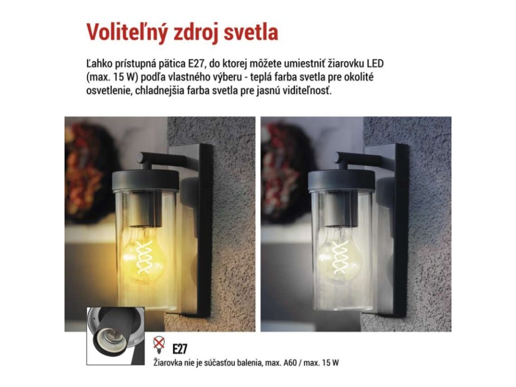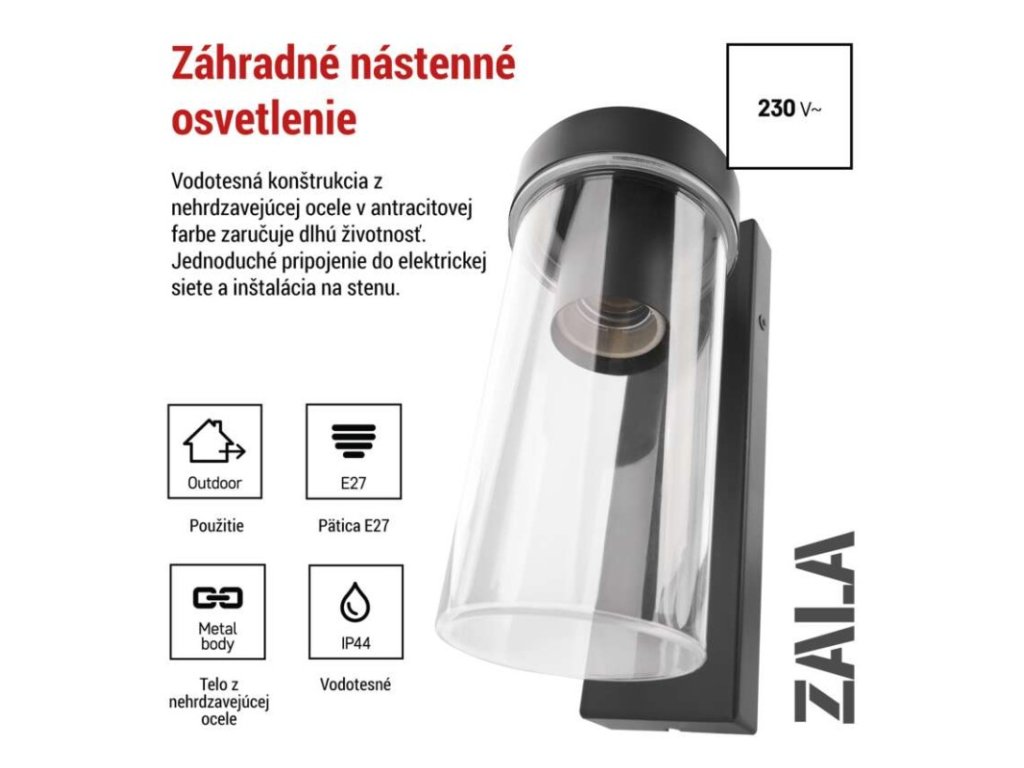 Záhradné nástenné svietidlo ZALA, 14,5 x 8,9 x 26,2 cm, 1 x E27, 15 W - ZGC010P