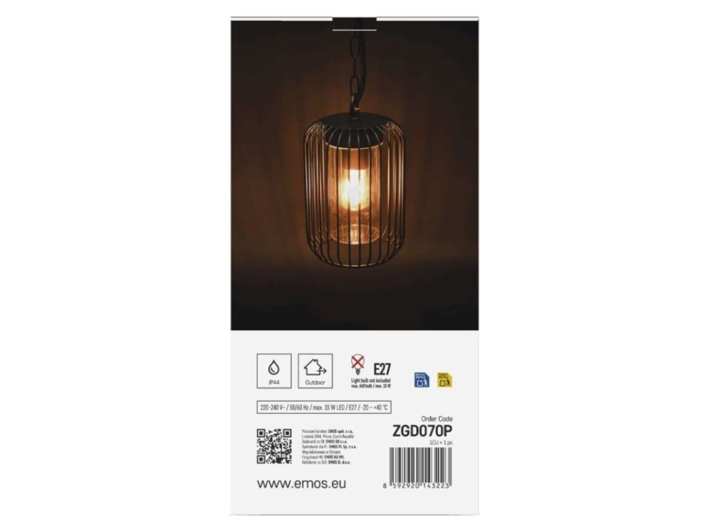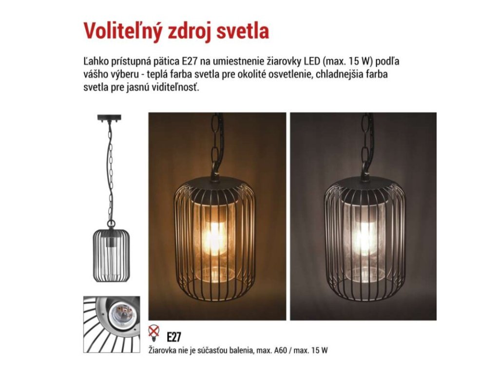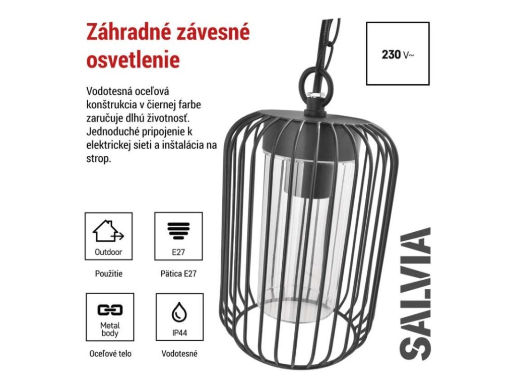 Zahradné závesné svietidlo SALVIA, 16 x 16 x 32 cm, 1 x E27, 15 W - ZGD070P