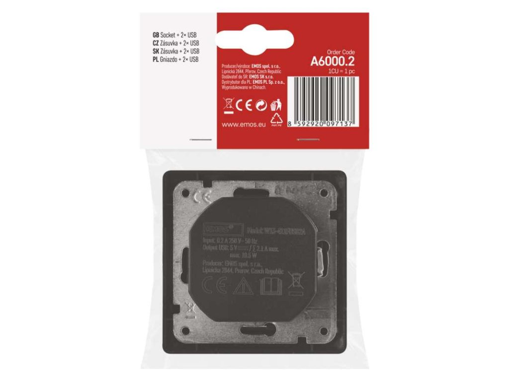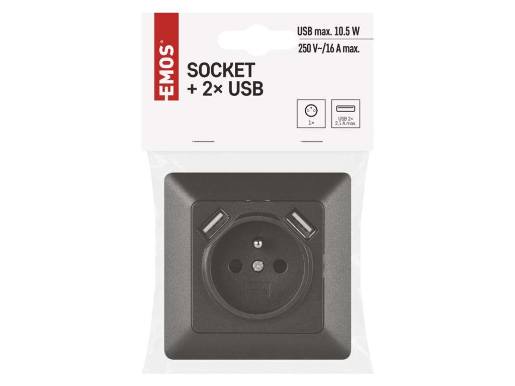 Zásuvka s USB 2,1A max., antracit - A6000.2